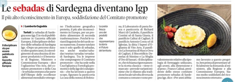 IGP attribuito alle SEBADAS. - Vito Arra, Azienda i Sapori D’Ogliastra,